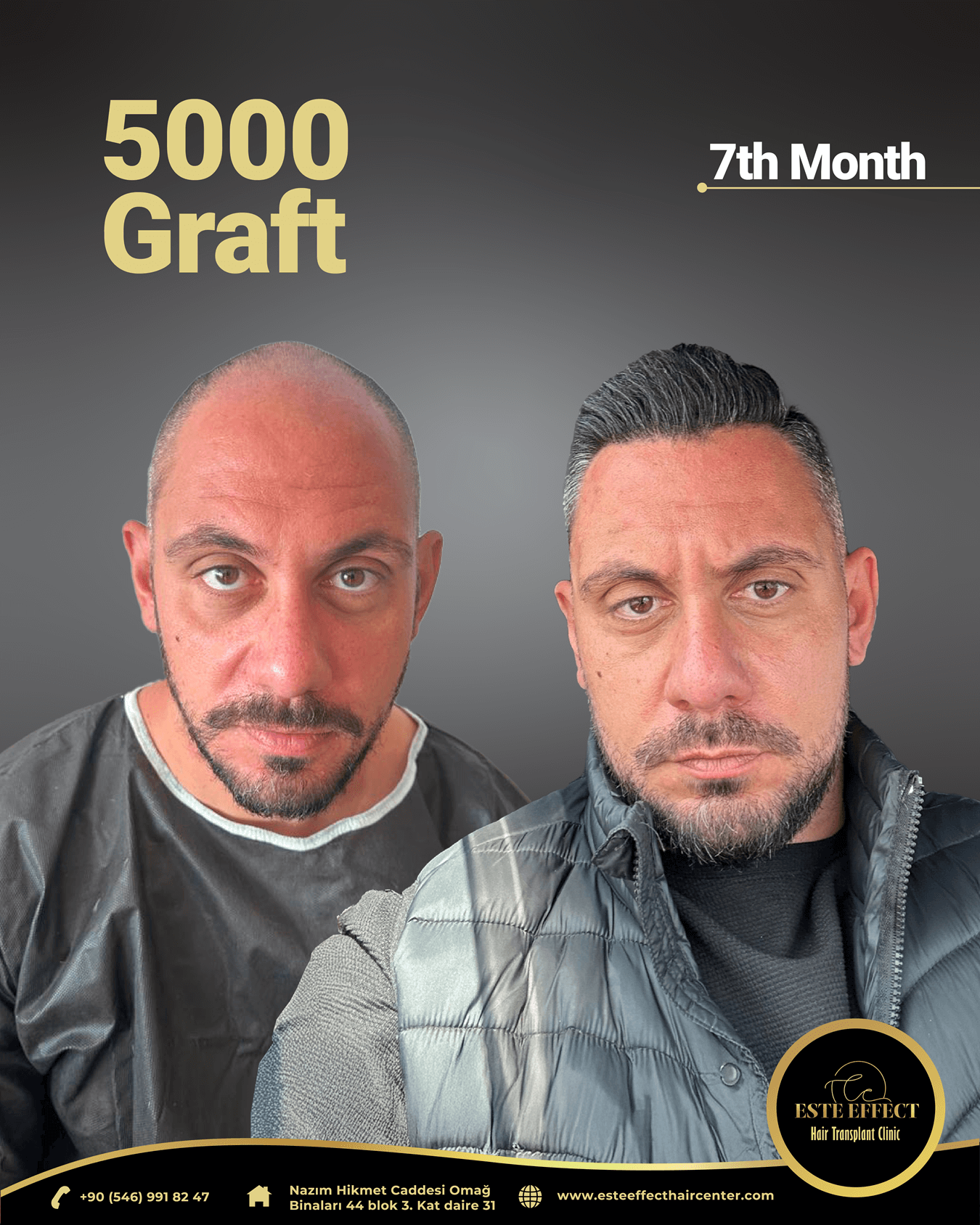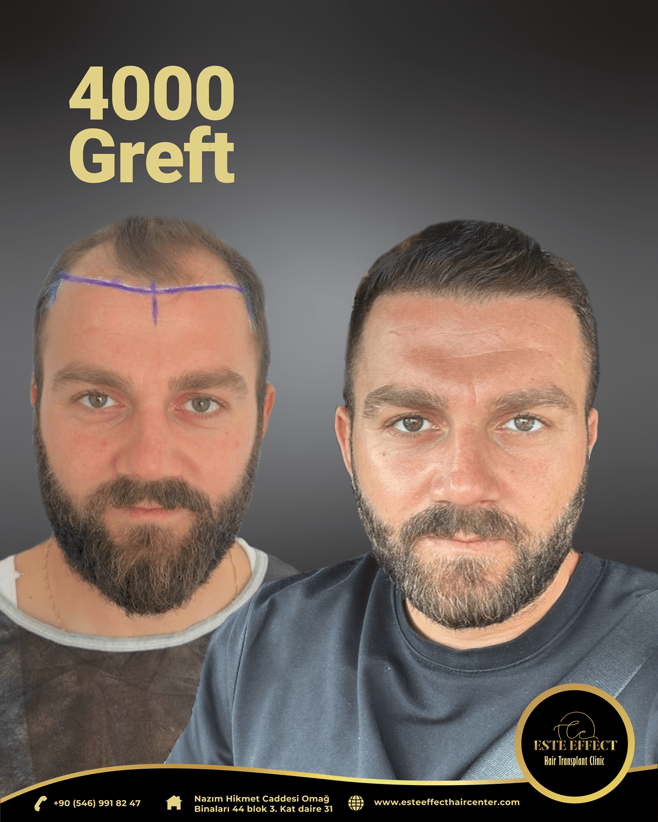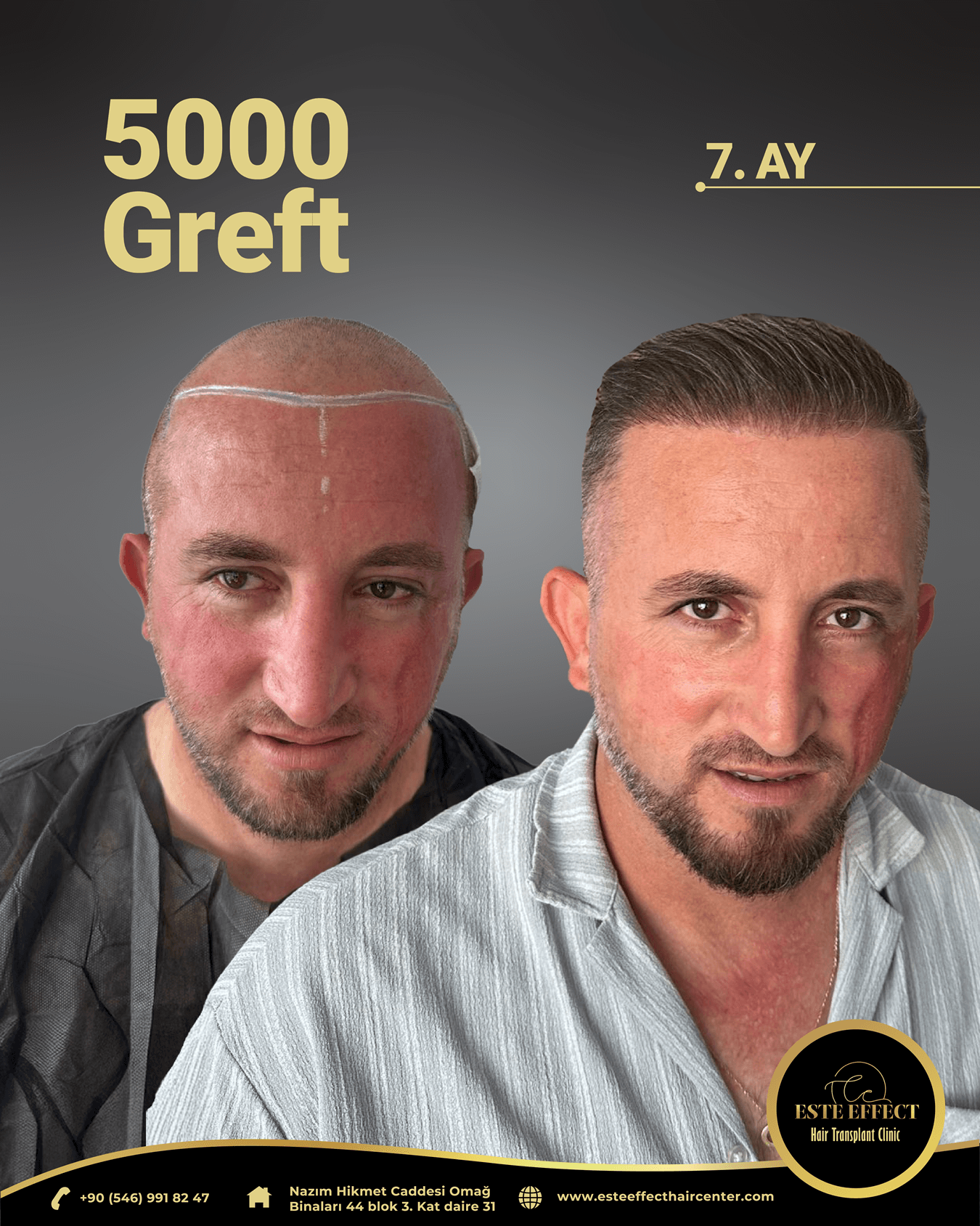 Başından sonuna kadar özel ilgi hiç bir acı çekmeden ve özellikle işi o kadar profesyonel bir şekilde yaptıkları için sihirli dokunuşlar ile saç ekimini gerçekleştirdik. İşi para için değil severek ve özenerek yaptıkları için işin hakkını verip başarılı bir ekip teşekkür ederim este effect clinige ellerinize sağlık.